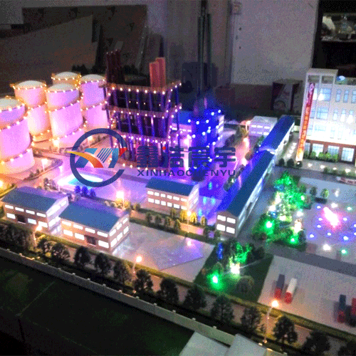 模型沙盤(pán)燈光:罐體模型環(huán)形樓梯使用流水燈光閃動(dòng)表現(xiàn),消防水池使用藍(lán)色燈光仿真水突出效果。辦公樓內(nèi)部萬(wàn)家燈火交替閃爍逼真再現(xiàn)。